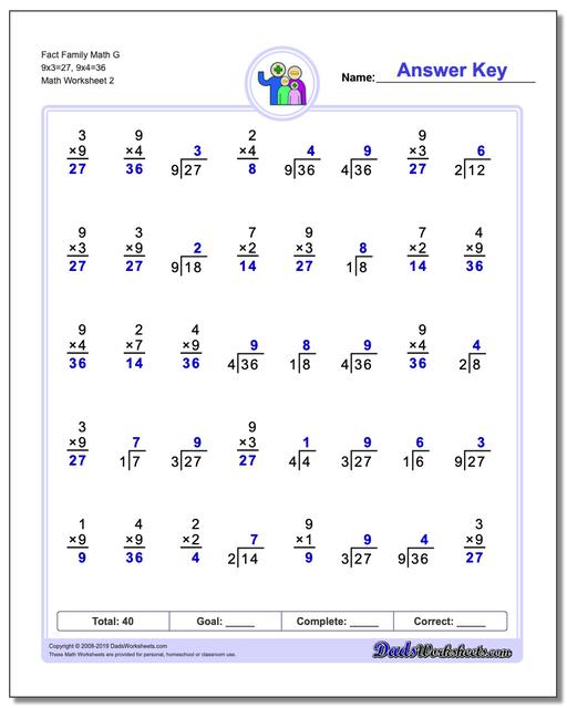 Fact Family Worksheets (Addition and Subtraction) Here are some printable number family and number bond worksheets to show the relationships between addition and subtraction problems. Fact Family Flashcards Here's a complete set of addition and subtraction fact family flashcards. Fact Family Worksheets | Multiplication and Division The multiplication and division fact family worksheets hand-picked for children of grade 3 and grade 4; help comprehend the inverse relationship between multiplication and division. Find PDFs to categorize the numbers as 'members' or 'not members' of the fact family, find the missing members, write the four related multiplication and division ... Multiplication Worksheets - Math Worksheets 4 Kids Multiplication and Division Fact Family. Unravel our multiplication and division fact family worksheets to identify the fact family members, missing members of the fact family, complete multiplication and division facts, fact family houses and more! Lattice Multiplication. Lattice multiplication is the best method to solve complex problems. Search Printable 1st Grade Addition Worksheets - Education Browse Printable 1st Grade Addition Worksheets. Award winning educational materials designed to help kids succeed. ... Jump to the rhythm of the math beat with this 1st grade worksheet that features single-digit addition problems with sums up to 9. 1st grade. ... In this fact family worksheet, third graders will fill in the missing numbers in ...